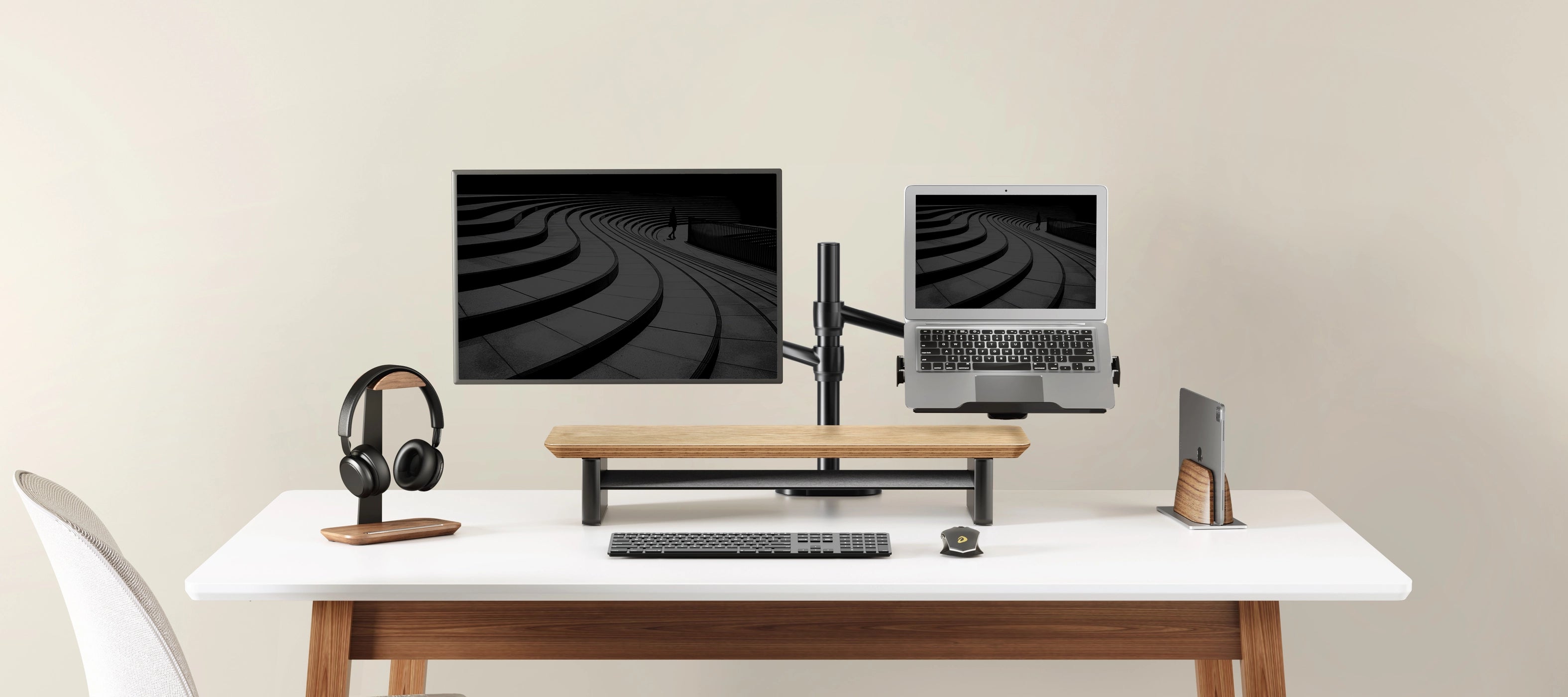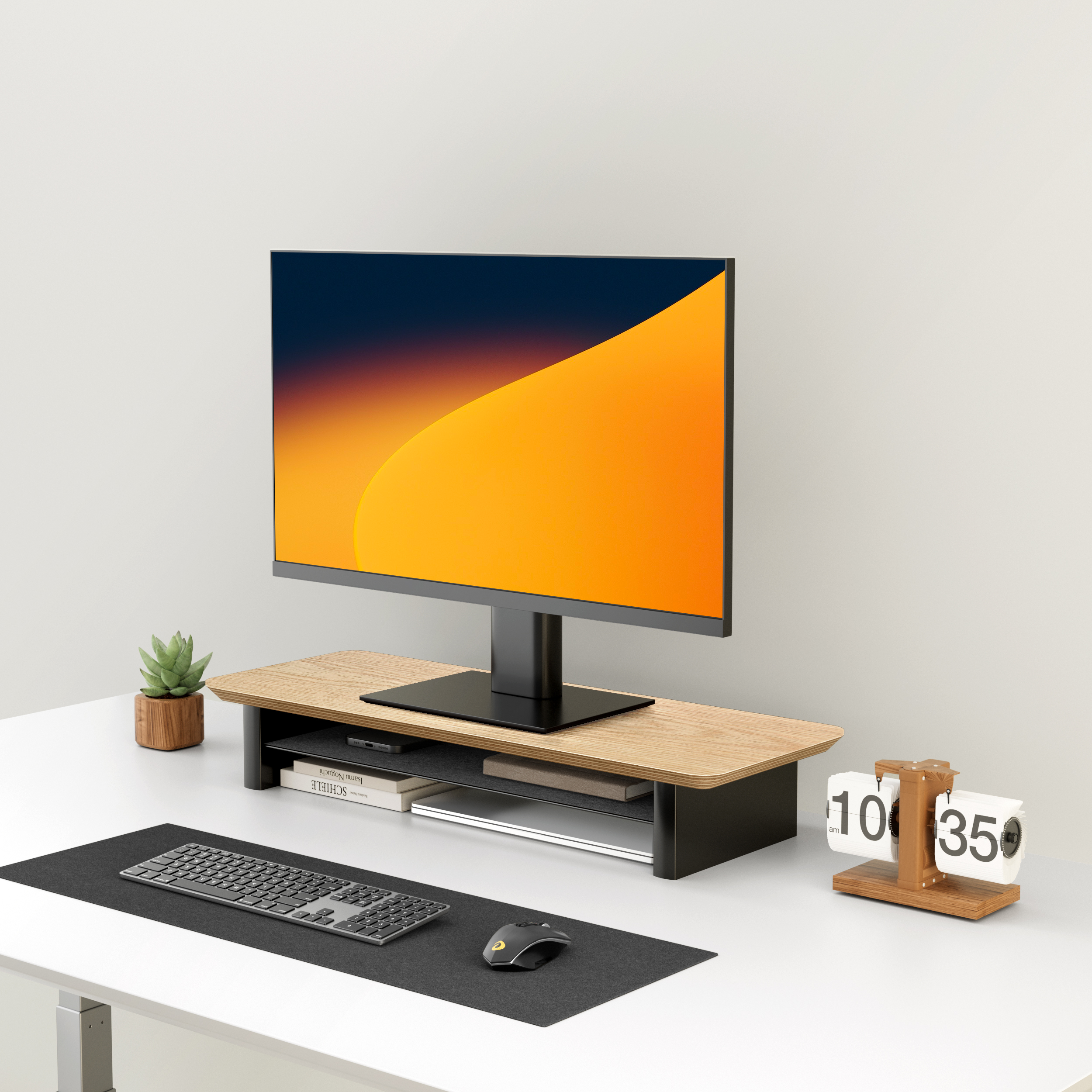 Sorgen Sie für einen Arbeitsplatz, der nicht nur gut aussieht, sondern sich auch angenehm anfühlt. Dieser stilvolle Monitorständer hebt Ihren Bildschirm auf Augenhöhe und fördert so eine ergonomische Haltung – ideal zur Vorbeugung von Nacken- und Rückenschmerzen.