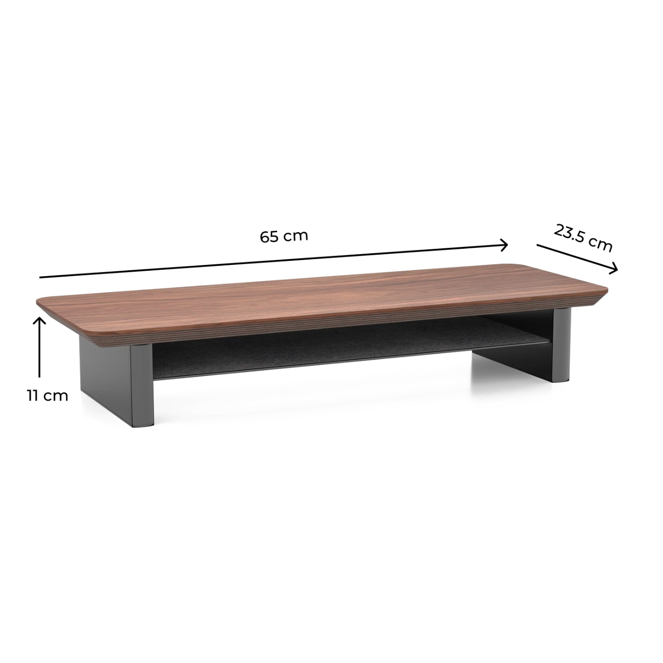 Kompakte Größe – 65 cm breit, ideal für einen einzelnen Monitor bis 27 Zoll.