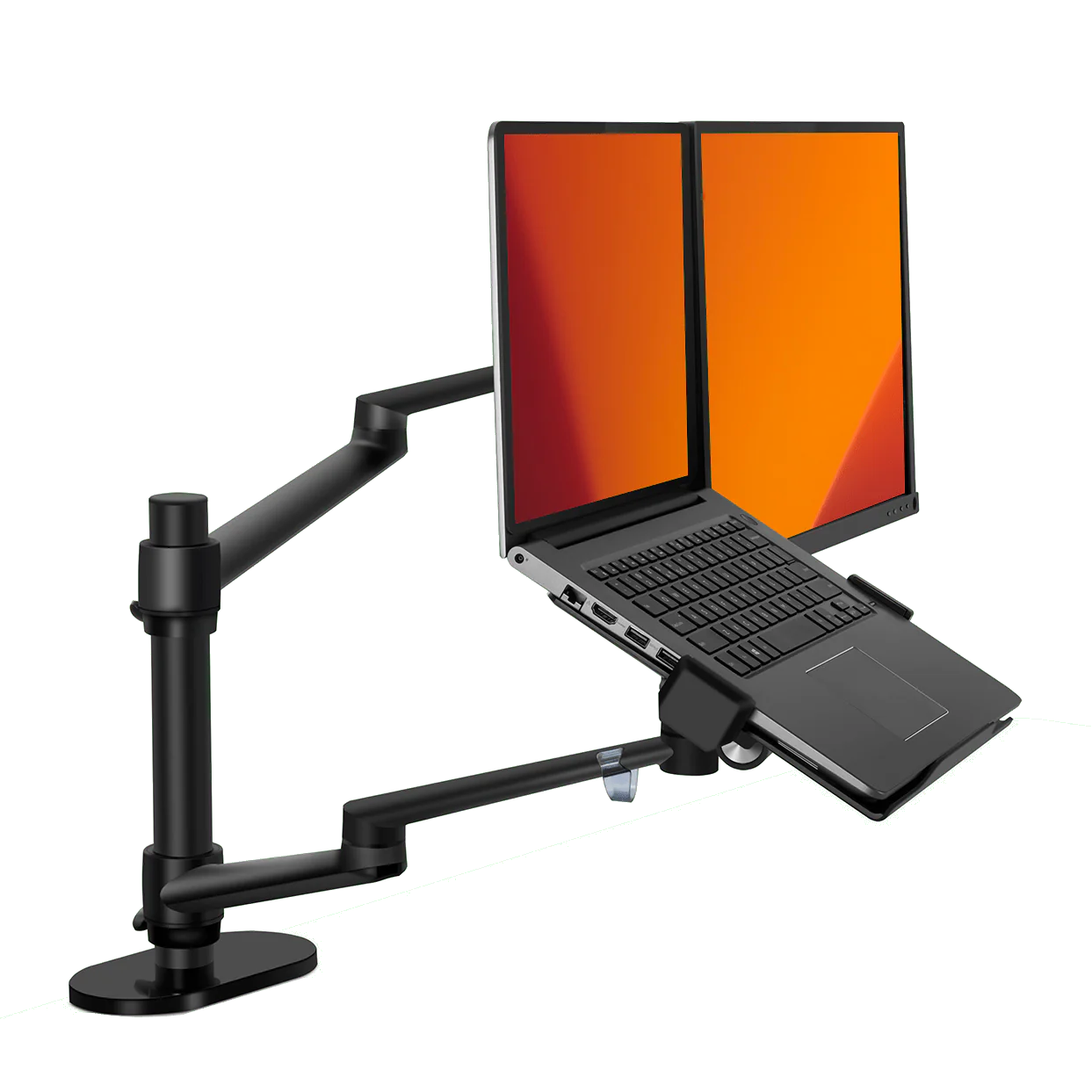 Studien zeigen, dass die Nutzung von zwei Monitoren die Produktivität um bis zu 43 % steigern kann. Bereit, von diesen Vorteilen zu profitieren? Positionieren Sie Ihre Bildschirme perfekt mit dem Alberenz® Laptop-Monitorarm (schwarz).