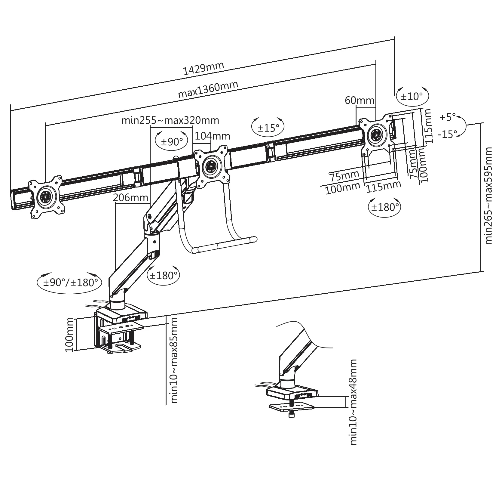 - Ergonomisches Design – Passen Sie Höhe, Neigung und Drehung Ihrer Bildschirme für eine gesunde und komfortable Haltung an.