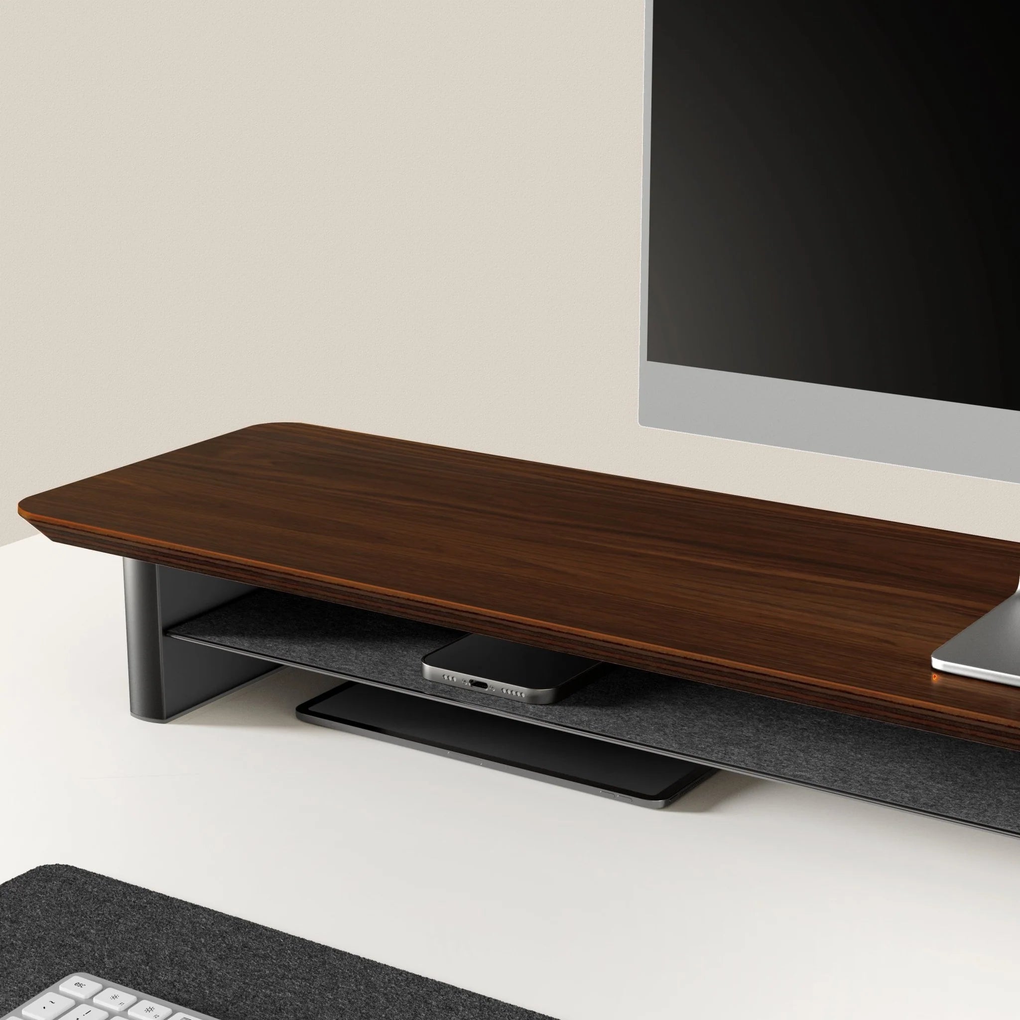 Vervollständige deinen Arbeitsplatz mit dem Alberenz® Walnuss Monitorständer und erlebe die perfekte Mischung aus Design, Komfort und Funktionalität.